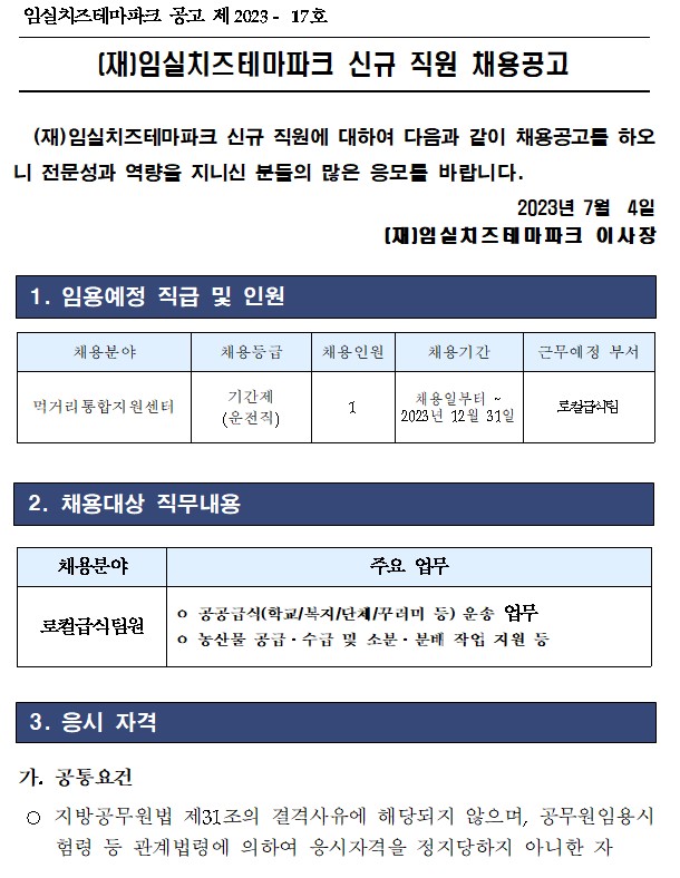 - 다음글(재)임실치즈테마파크 원장 채용공고 23.07.04